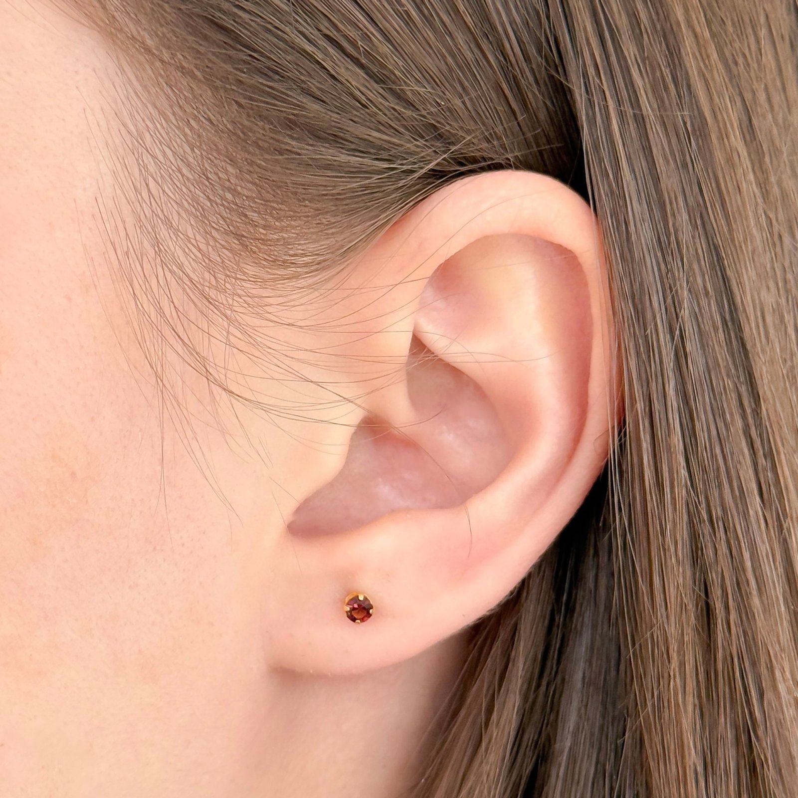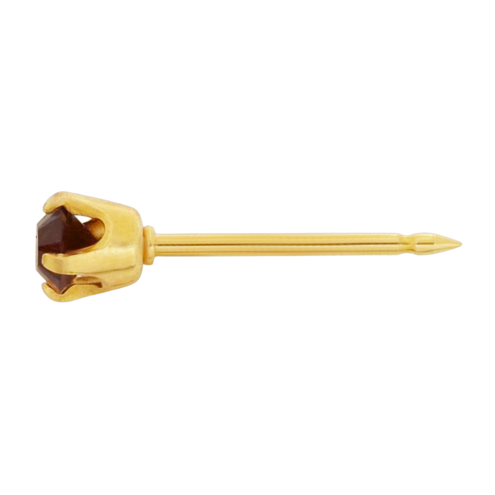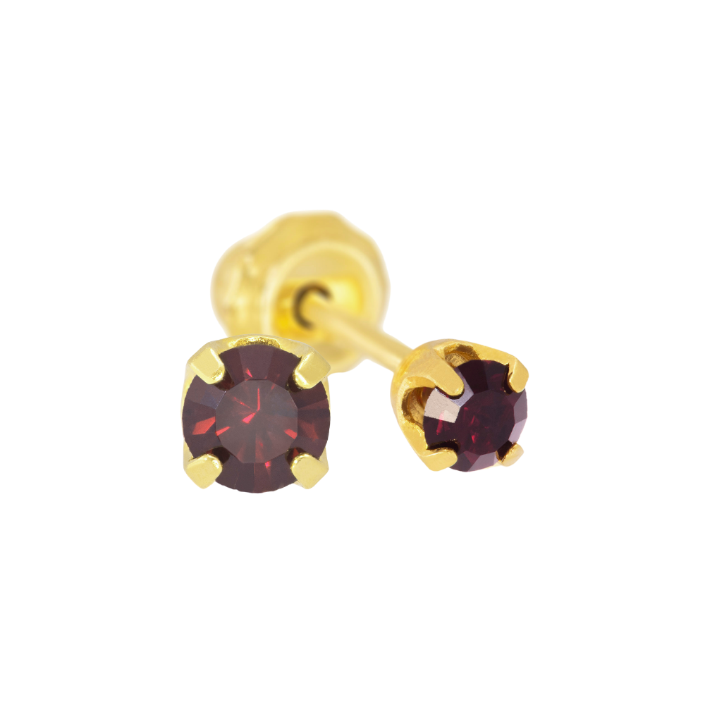 Arete de acero de grado quirúrgico con baño de oro de 24kt y broche ortopédico a presión o Safety Back™ patentado por la marca.