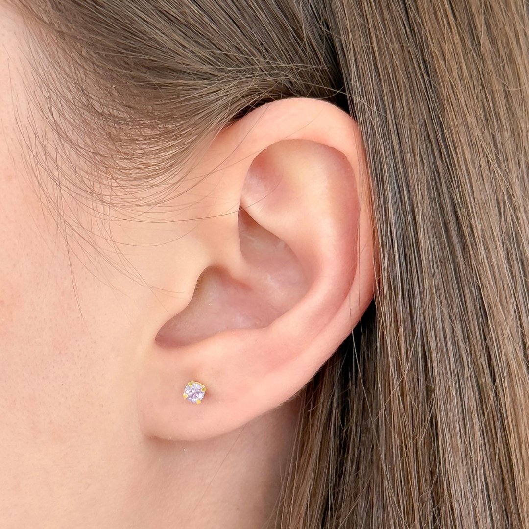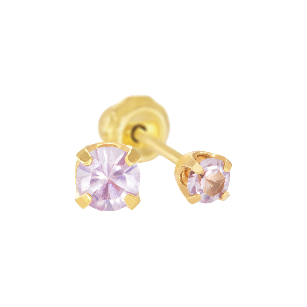Arete de acero de grado quirúrgico con baño de oro de 24kt y broche ortopédico a presión o Safety Back™ patentado por la marca.
