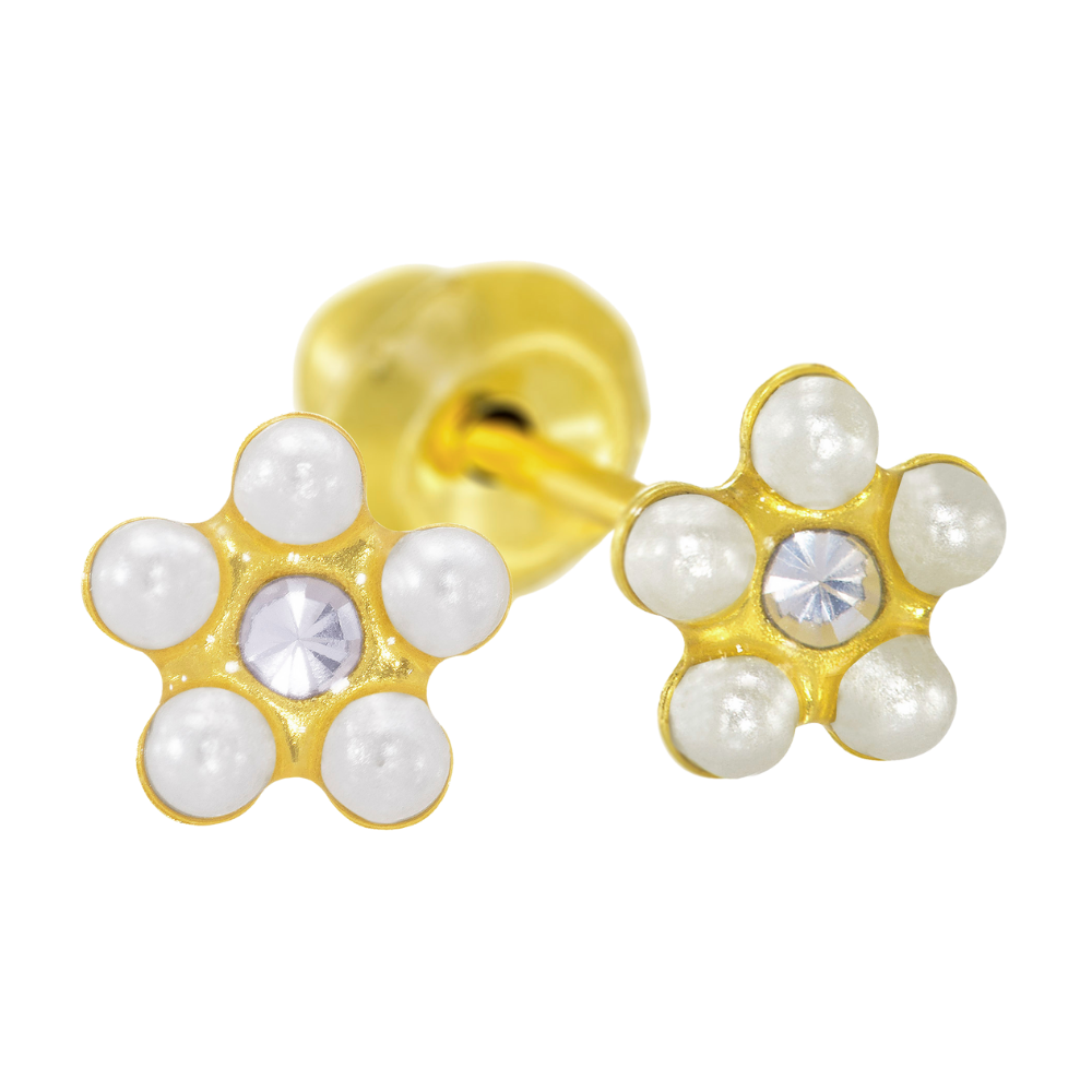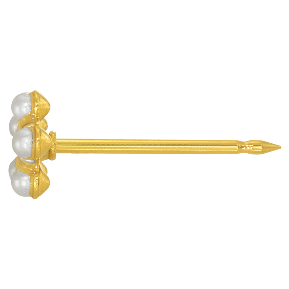 Arete de acero de grado quirúrgico con baño de oro de 24kt y broche ortopédico a presión o Safety Back™ patentado por la marca.