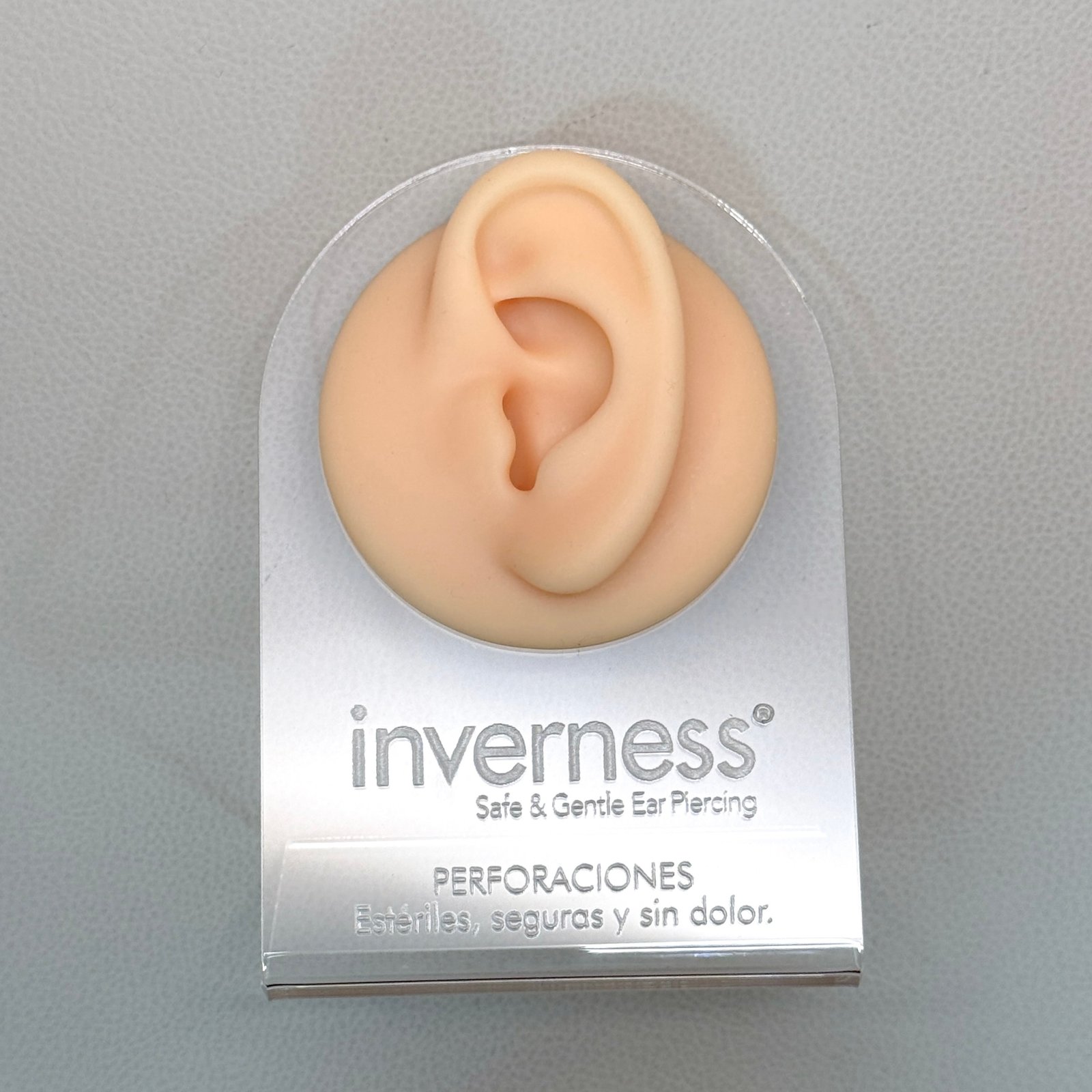 Exhibidor de oreja de goma con base en acrílico transparente.