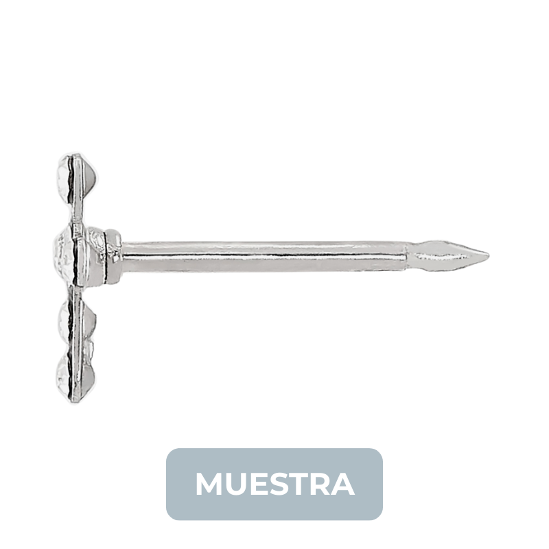 Muestra de arete de acero de grado quirúrgico y broche plástico.
