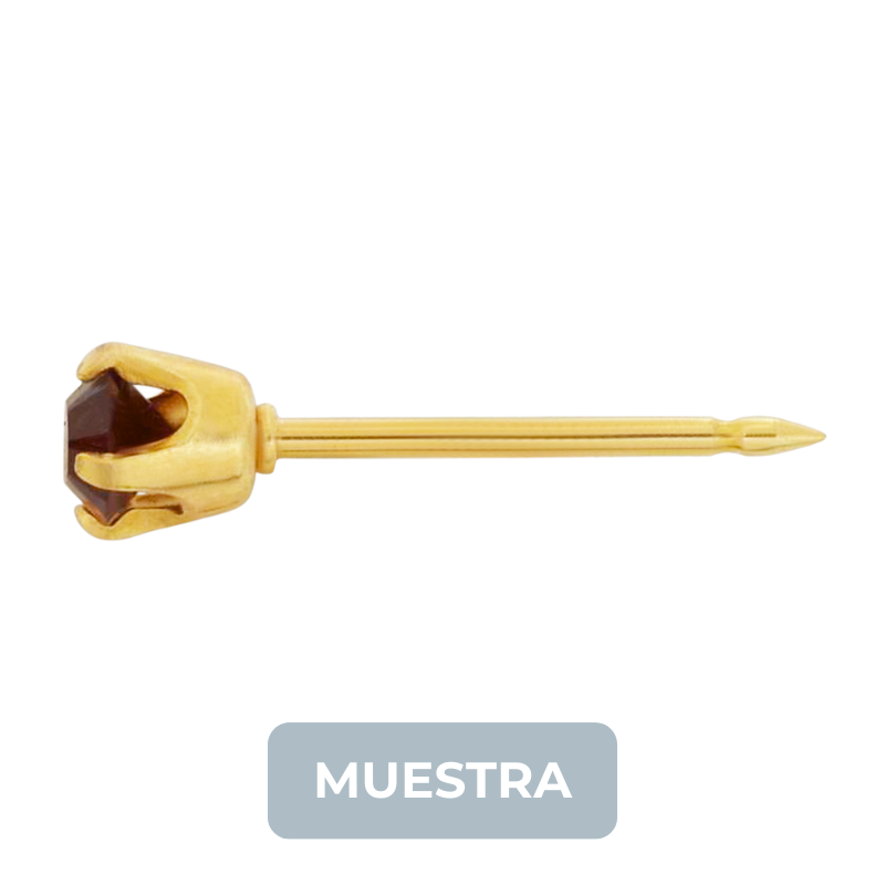 Muestra de arete de acero de grado quirúrgico con baño de oro de 24kt y broche plástico.