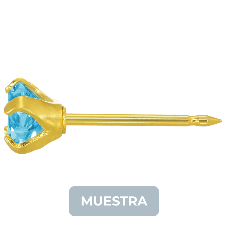 Muestra de arete de acero de grado quirúrgico con baño de oro de 24kt y broche plástico.